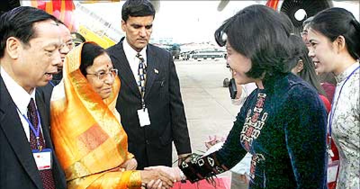 Image: Indian President Pratibha Patil, being welcomed byVice Chairperson of the People's Committee of Ho Chi minh City, Madam Nguyen Thi Hong, on her arrival.