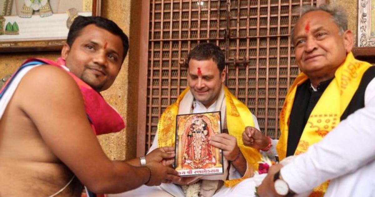 Rahul Gandhi at the Ranchhod Raiji Mandir during his Gujarat campaign. Photograph: Kind courtesy @INCIndia/Twitter