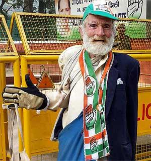 A Congress supporter at 24 Akbar Road, tweets Mihir Sharma. Possibly, the only man there.