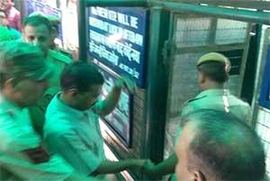 AAP tweets this picture of Arvind Kerjiwal being taken back to judicial custody this afternoon after he continued to refuse to furnish the bond in the defamation case filed by Nitin Gadkari against him.