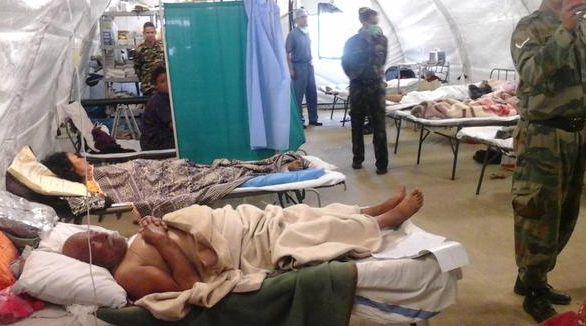 Indian Army's Rapid Action Medical Team at the field hospital at Rajdal Gana, Lagankhel, in the interiors of Nepal.