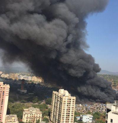 @MihirBijur tweeted this picture, saying, "Over 50 explosions in the last 30 mins at this horrible fire at damu nagar, Kandivali E. Spreading fast! Very scary!"