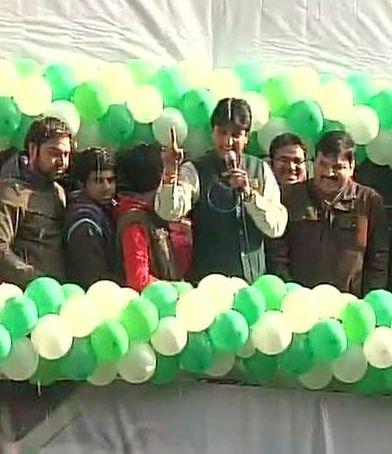 Pic: AAP's Kumar Vishwas holds forth at the party HQ. It's a historical comeback for the party which everyone had written off after Kejriwal quit as CM in just 49 days.