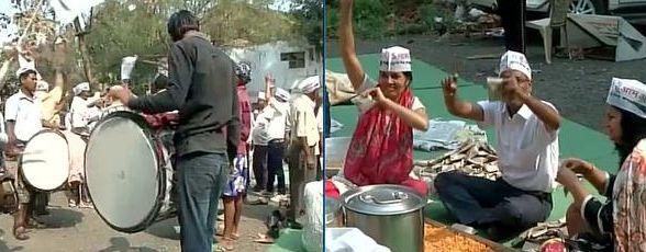 In Nagpur, AAP workers celebrate, distribute sweets.
