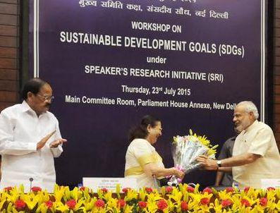 PM Modi at the 'Speaker Research Initiative' programme at the Parliament House Annexe with Speaker Sumitra Mahajan and union minister Venkiah Naidu.