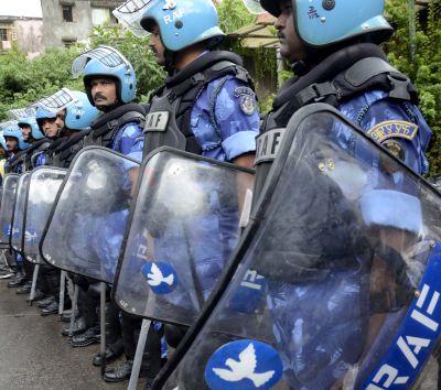 A RAF contingent in Mumbai as the city stepped up security in the wake of Yakub Memon's execution. Pic: Sahil Salvi.