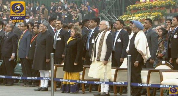 Pic: Vice president Hamid Ansari, his wife, Salma, PM Modi and former PM Dr Manmohan Singh.