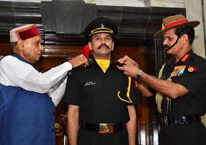 BJP MP Anurag Thakur being commissioned into Territorial Army in Delhi.