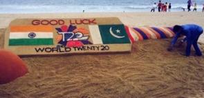 And here is Sand Artist Sudarsan Pattnaiks sand sculpture, wishing luck to Team India for match against Pakistan in the World Cup T20.