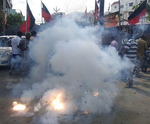 Tamil Nadu: DMK workers celebrate in Coimbatore after Patiala House Court acquitted all in the 2G scam verdict.