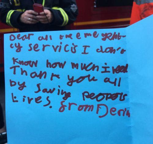Grenfell Tower fire: London Fire Brigade tweets a letter of thanks from a child.