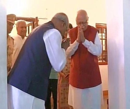 NDA's presidential candidate Ram Nath Kovind meets veteran BJP leader LK Advani at his residence in Delhi.