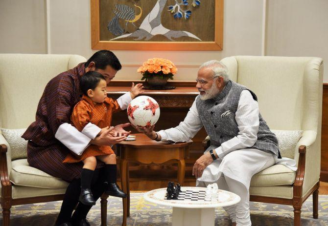 PM Modi presented the Prince of Bhutan an official football of the FIFA U-17 World Cup and a chess set during the visit.