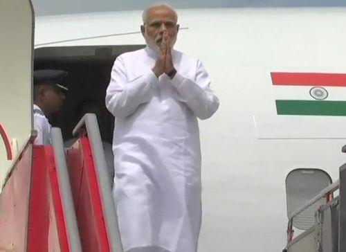 PM Modi at Chennai airport. He will head to Rajaji Hall directly from the airport to pay his respects to Karunanidhi.