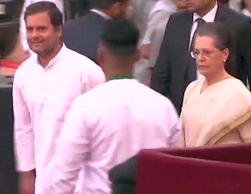 Congress president Rahul Gandhi and UPA chairperson Sonia Gandhi arrive at Rashtrapati Bhavan to attend PM Modi swearing-in ceremony.