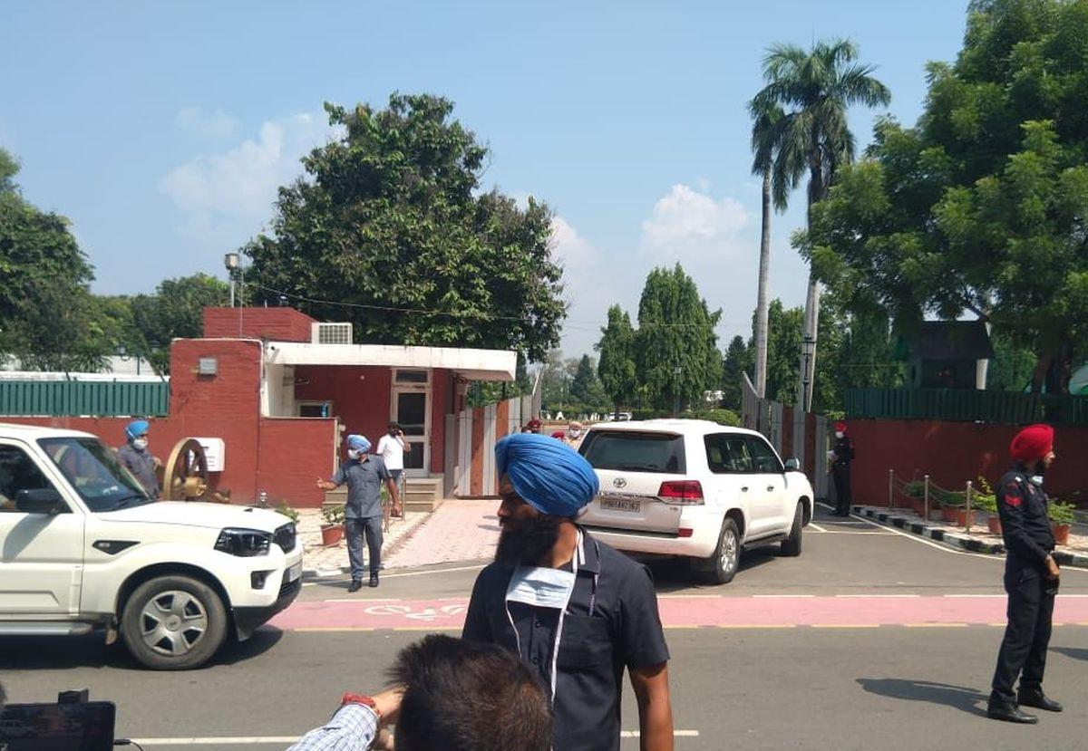 Punjab Chief Minister Charanjit Singh Channi reaches Raj Bhawan to meet Governor Banwarilal Purohit.