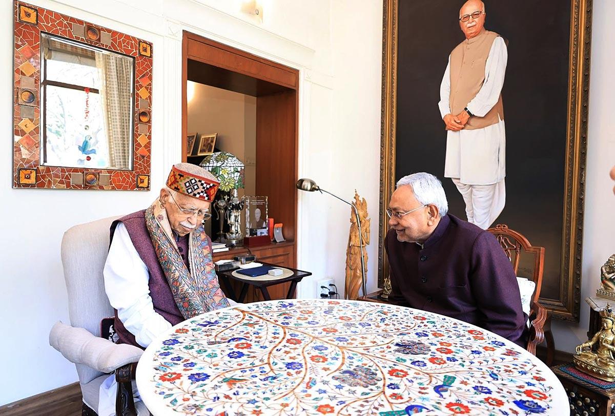 Bihar Chief Minister Nitish Kumar on Thursday met veteran BJP leader Lal Krishna Advani and congratulated him on being awarded the Bharat Ratna, India's highest civilian honour.