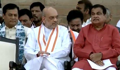 Sarbananda Sonowal with Amit Shah and Nitin Gadkari at the Forecourt of the Rashtrapati Bhavan.