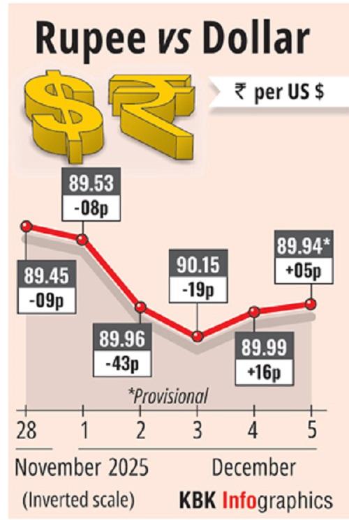 After the RBI's monetary policy announcement, the rupee lost ground and fell to 90.06 against the American currency, a 16-paise decline from its previous close of 89.89.