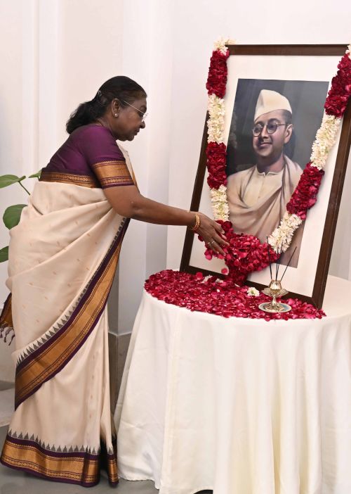 President Droupadi Murmu pays tributes to Netaji Subhas Chandra Bose on his birth anniversary today, observed as Parakram Diwas.