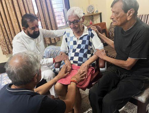 Family members break down after receiving the news of Sumeet Sabarwal's death in the Air India plane crash yesterday. Captain Sumeet Pushkaraj Sabharwal (56) was the pilot of the plane and was a resident of Jal Vayu Vihar in the Powai area of Mumbai and lived with his elderly parents.