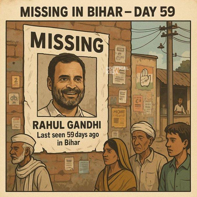 Malviya also shared an animated 'Missing' poster featuring Rahul Gandhi's photo with the caption: "MISSING - LAST SEEN 59 DAYS AGO IN BIHAR."