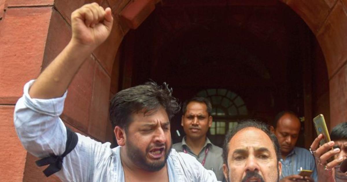 Minutes after Home Minister Amit Shah announced the government's move to scrap Article 370 that gives special status to the state, Peoples Democratic Party's Rajya Sabha MP Nazir Ahmad Laway created a ruckus against the move.