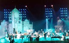 As the chanting reached a crescendo, conductor Arman Anassion hurried onstage and bowed to the audience. The Taj, glowing in an early morning light, framed his rising arm as Pedro Eustache on the saxophone broke into the opening bars of Deliverance. Just as the orchestra gained momentum, Yanni ran up to the stage, his black hair flying in the wind. Clad in stark whites with embroidery up front, the composer sat at the keyboard and began playing, and the sound that emerged was that of the sitar.