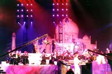 Now the set was bathed in blue and the Taj behind in brilliant white. The trumpets opened up, gave predence to the bass guitar and the keyboards before ending the piece, to deafening applause.
