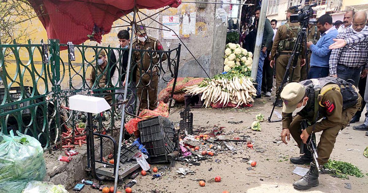 The IED blast took place around 1 pm in Slathia Chowk where fruit and vegetable vendors put up their carts.