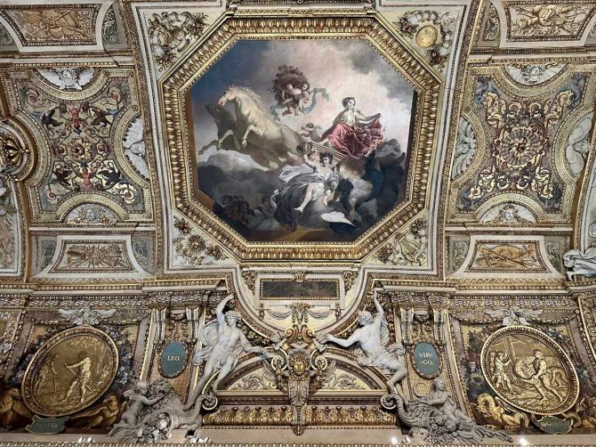 IMAGE: Apollo Gallery's (Galerie d'Apollon) ceiling, which houses the French crown jewels (not pictured), at the Louvre in Paris in this image taken from social media, here and below. Photograph: Olivia Wong via Files/Reuters