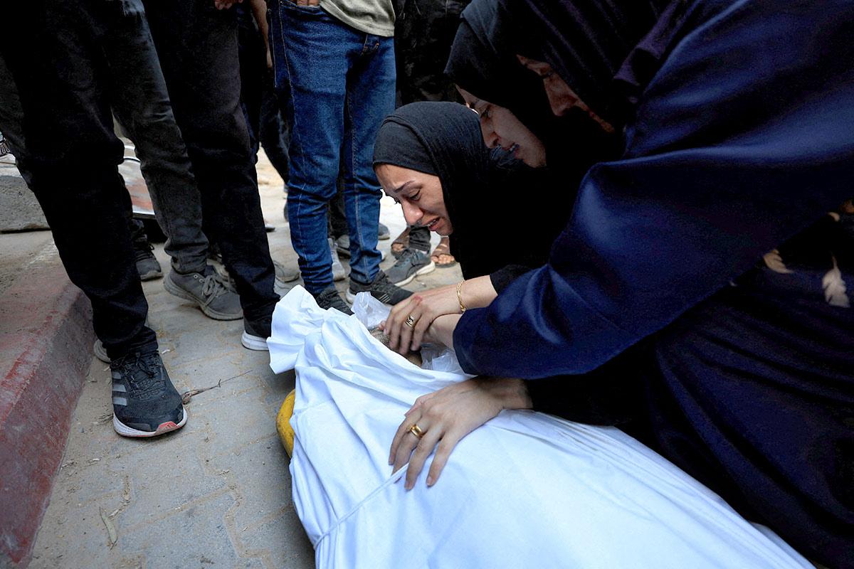 IMAGE: Mourners at the funeral of Palestinians killed in an overnight Israeli strike in Gaza City. Photograph: Dawoud Abu Alkas/Reuters