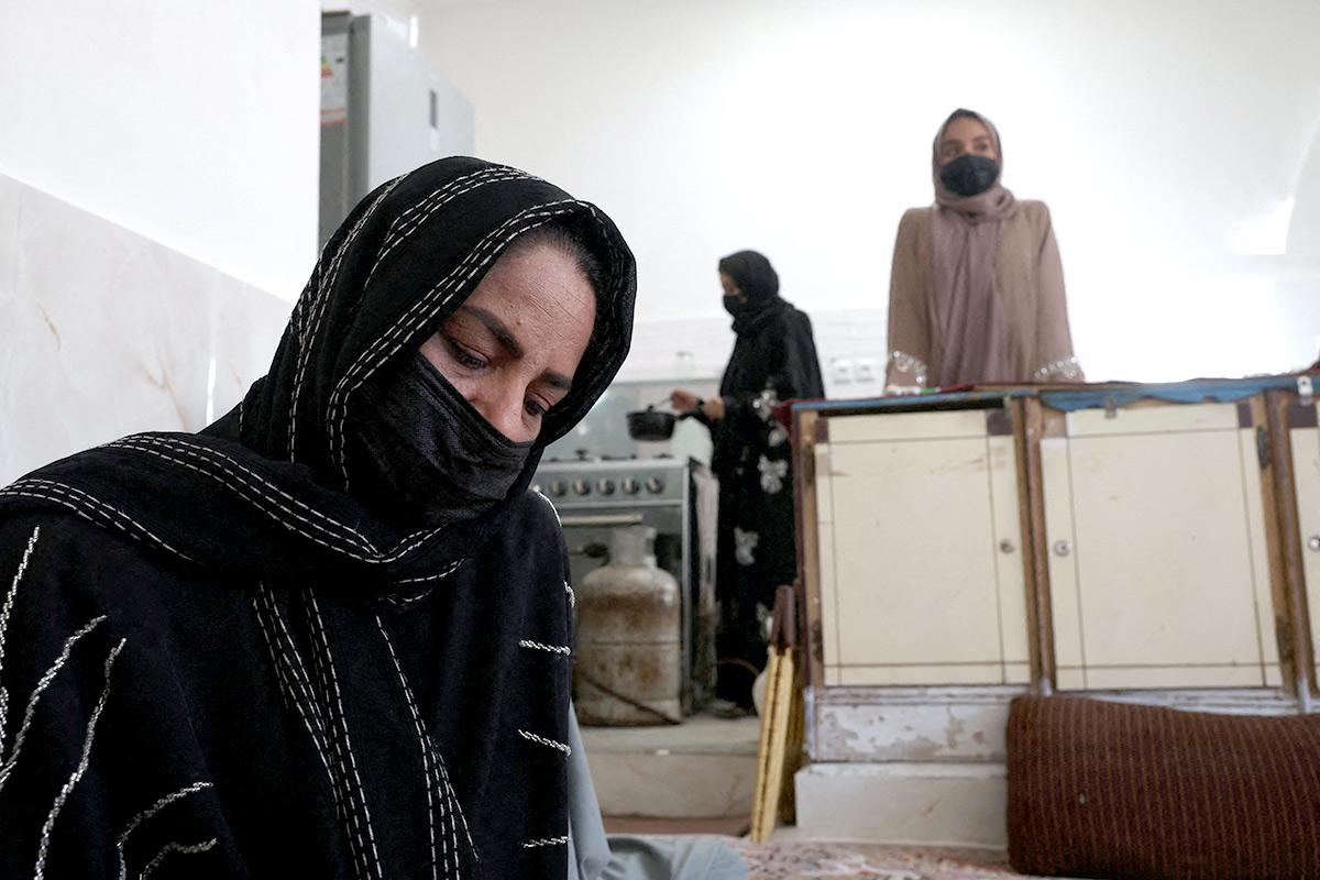 IMAGE: Rahela, 37, an Afghan woman and certified makeup artist and seamstress, who, along with her two daughters, was deported from Iran, sits inside her father's house in Herat, Afghanistan. Photograph: Sayed Hassib/Reuters
