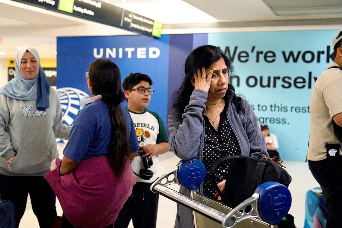 IMAGE: A traveler awaits delayed luggage after United Airlines grounded flights due to a tech outage at Newark airport, New Jersey, USA. Photograph: Ryan Murphy/Reuters