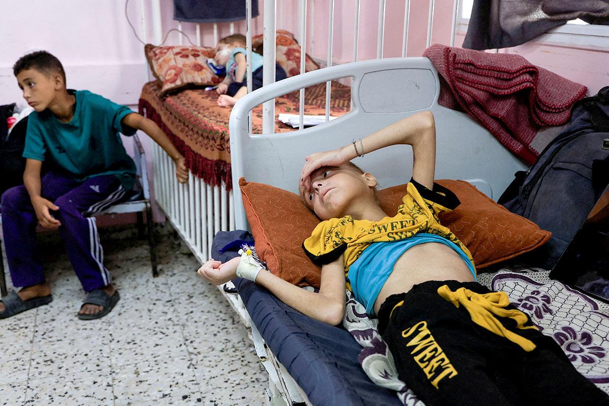 IMAGE: Palestinian child Huda Abu Al-Naja receives treatment at the malnutrition ward at the Nasser hospital in Khan Younis, southern Gaza Strip. Photograph: Hatem Khaled/Reuters