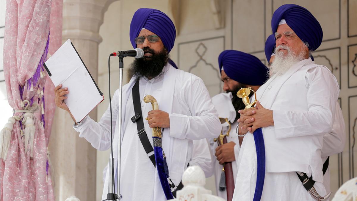 IMAGE: Akal Takht Jathedar Giani Kuldeep Singh Gharjaj announces religious punishment for Punjab Minister Harjot Singh Bains (unseen) as he appears before the Akal Takht at the Golden Temple in Amritsar. Photograph: ANI Photo