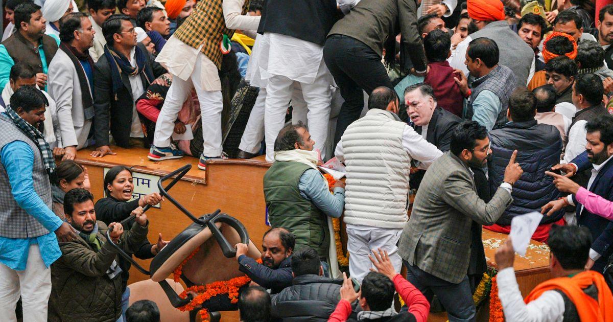 The AAP members got into heated arguments with their BJP counterparts, who retaliated by raising slogans against the AAP and its convener Arvind Kejriwal. Amid the chaos, both sides alleged manhandling by the other camp.