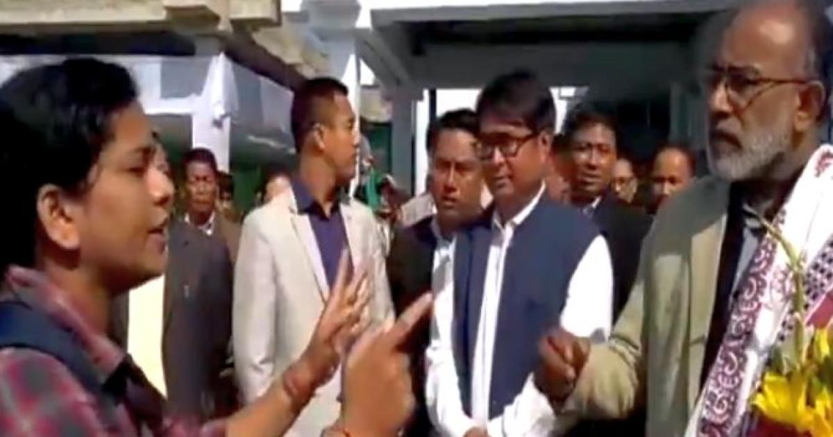 Union minister K J Alphons was confronted by an enraged woman passenger at the Imphal airport over the delay in her Kolkata-bound flight she was taking to rush to Patna to attend a funeral of her relative.