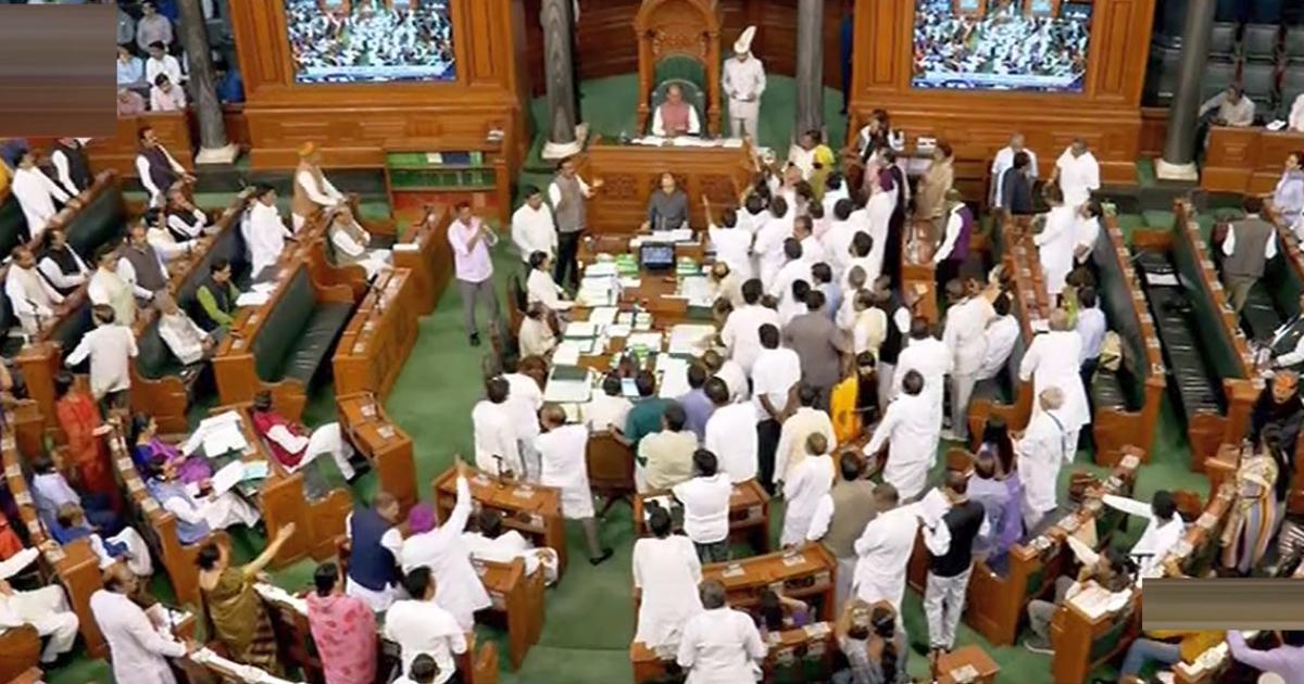 The turmoil continued for about 20 minutes, with Speaker Om Birla urging the members to allow the House to function smoothly.