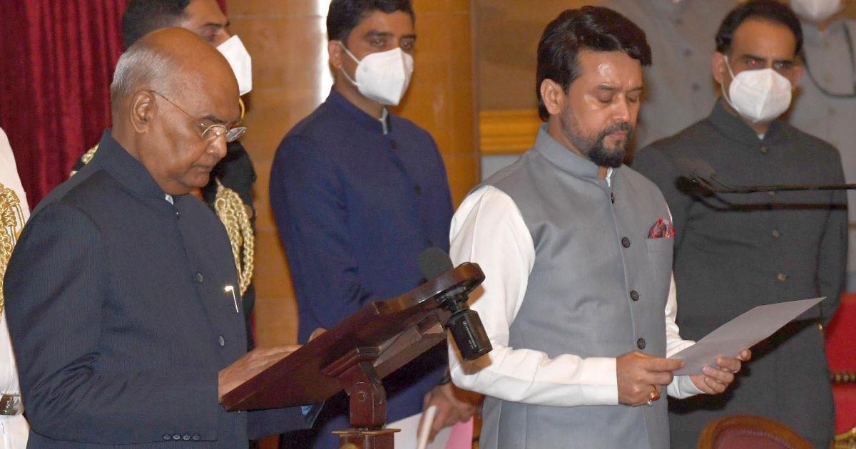 Bharatiya Janata Party MP Anurag Singh Thakur was on Wednesday sworn in as a Cabinet minister and been given the charge of Information and Broadcasting Ministry as well as the portfolio of the Youth Affairs and Sports ministry.