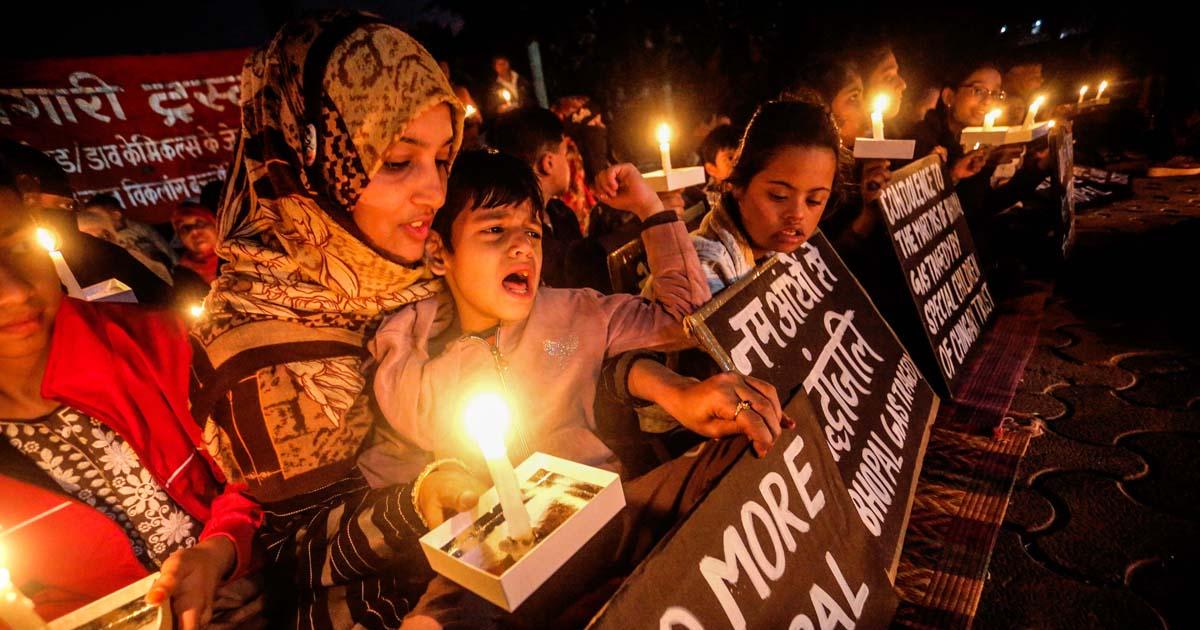 On the intervening night of December 2-3, 1984, highly toxic methyl isocyanate gas leaked from the Union Carbide factory in Bhopal, killing at least 5,479 people and maiming thousands.