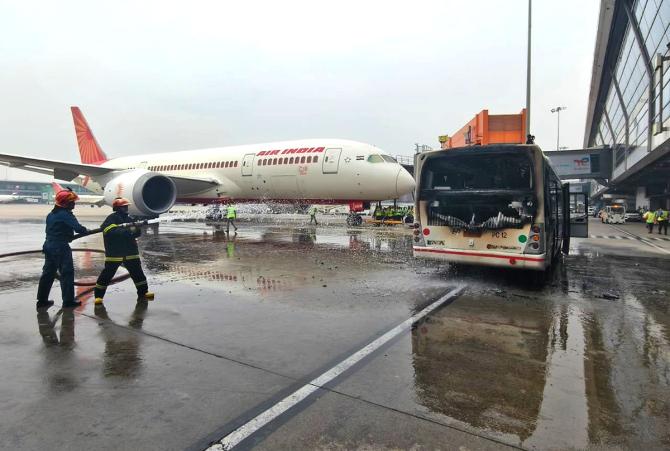 The fire was extinguished within a couple of minutes. The bus was stationary and fully vacant at the time of the incident, Delhi airport operator DIAL said.