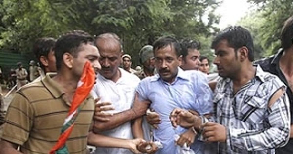 Image: Arvind Kejriwal with his supporters at a protest ' Photograph: Reuters