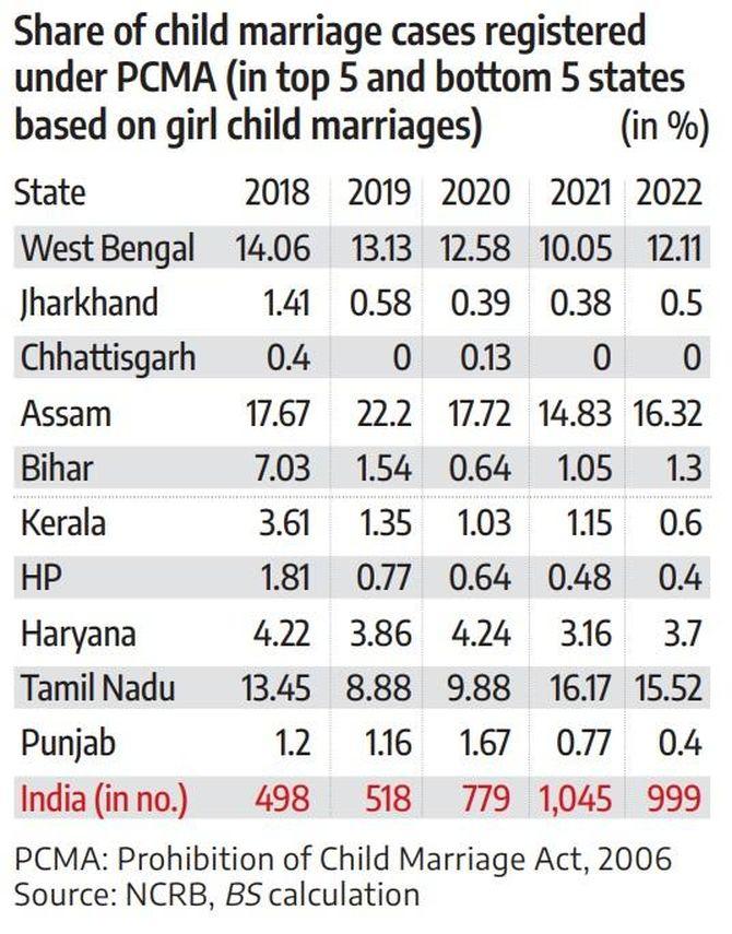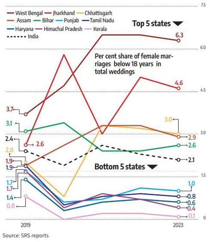Over 2019 to 2023 West Bengal and Jharkhand saw the share of girl child marriages in total weddings rise.