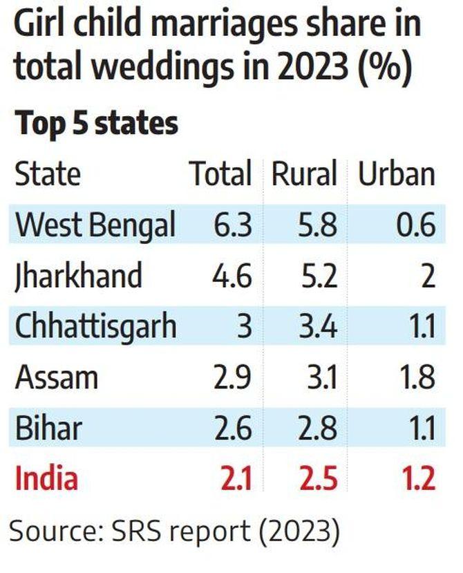 Fresh data from the Sample Registration System (SRS) reveals that of the total weddings that took place in 2023, 2.1 per cent had a girl child as a bride.