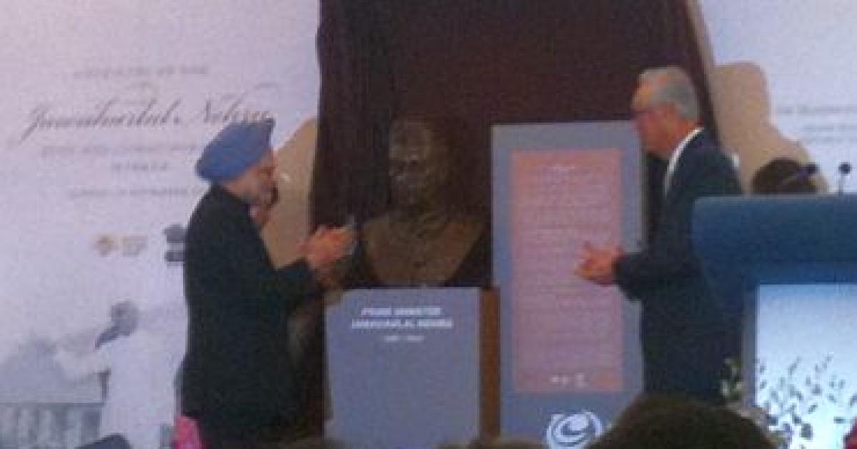 As a 1000-strong Indian community applauded, Prime Minister Dr Manmohan Singh on a rain-filled Sunday evening unveiled a bust of and marker on India's first prime minister Jawaharlal Nehru in Singapore's Asian Civilisation Museum.