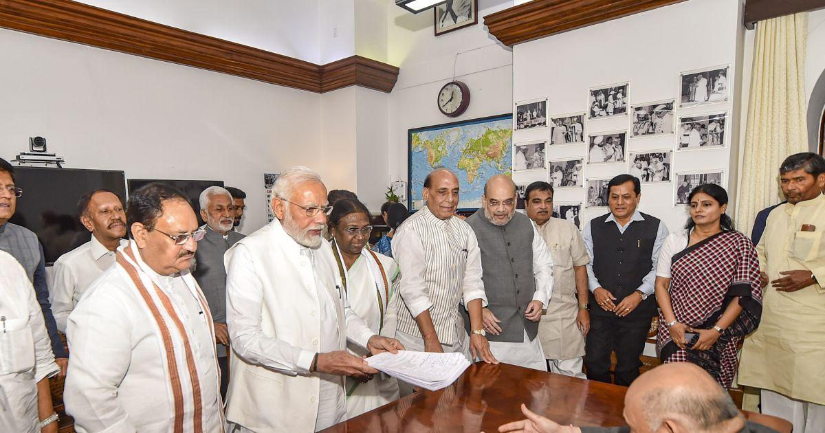 The Bharatiya Janata Party-led National Democratic Alliance's nominee Droupadi Murmu on Friday filed her nomination papers for the July 18 presidential election, with Prime Minister Narendra Modi handing over the set of papers to Returning Officer P C Mody.
