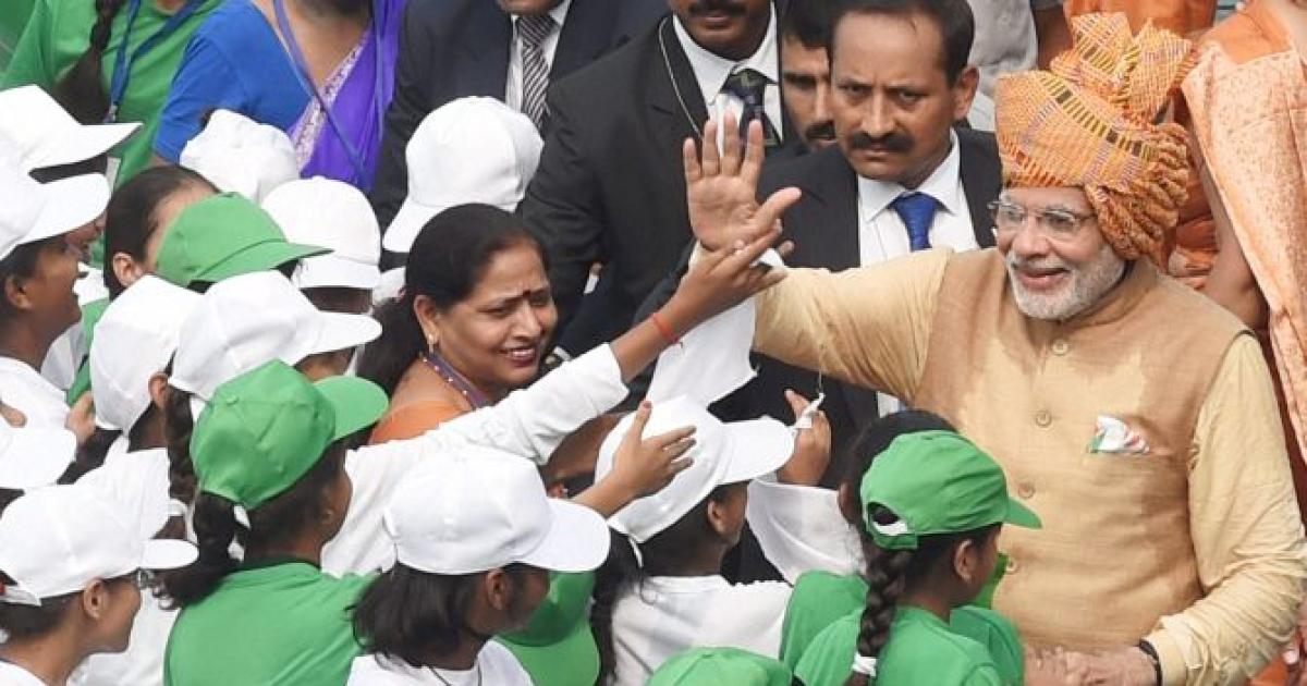 In an encore of the last year’s Independence Day celebrations, Modi, sporting a traditional safa (headgear), got down from his car while leaving the venue of the function at Red Fort and broke away from the Special Protection Group security cover to meet a group of school children, who had assembled there.