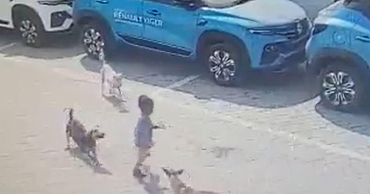 In the video clip that has gone viral, the canines are seen suddenly attacking the boy while tailing him, following which he falls down. He was walking alone.