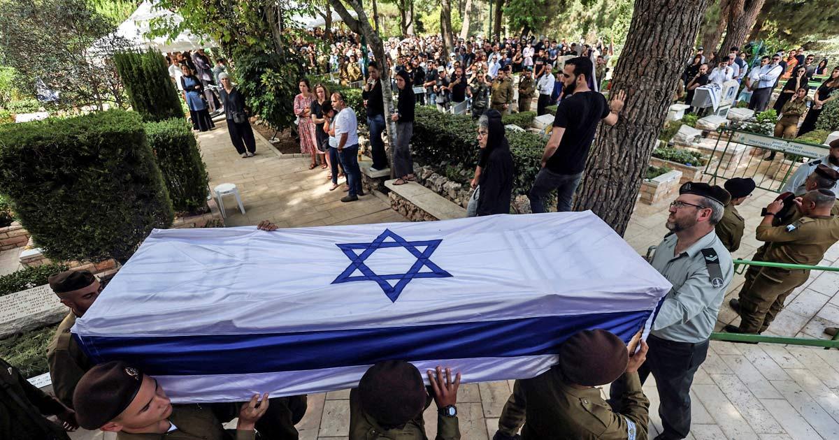 IMAGE: Soldiers carry the coffin of Adi Zur, a soldier who was slain in the assault on Israel by Hamas gunmen, at the funeral at the Mount Herzl military cemetery in Jerusalem. Photograph: Ronen Zvulun/Reuters